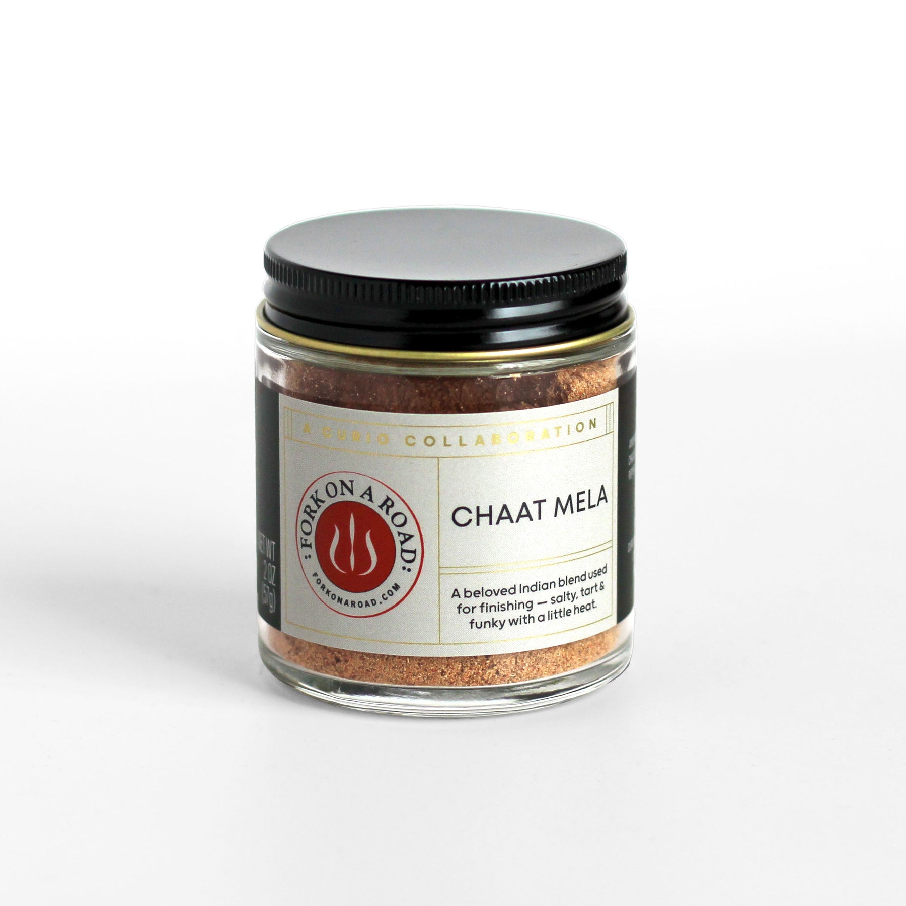 Curio Spice Co. Classic Blend Garam Masala in a glass jar, made in collaboration with Fork On A Road.