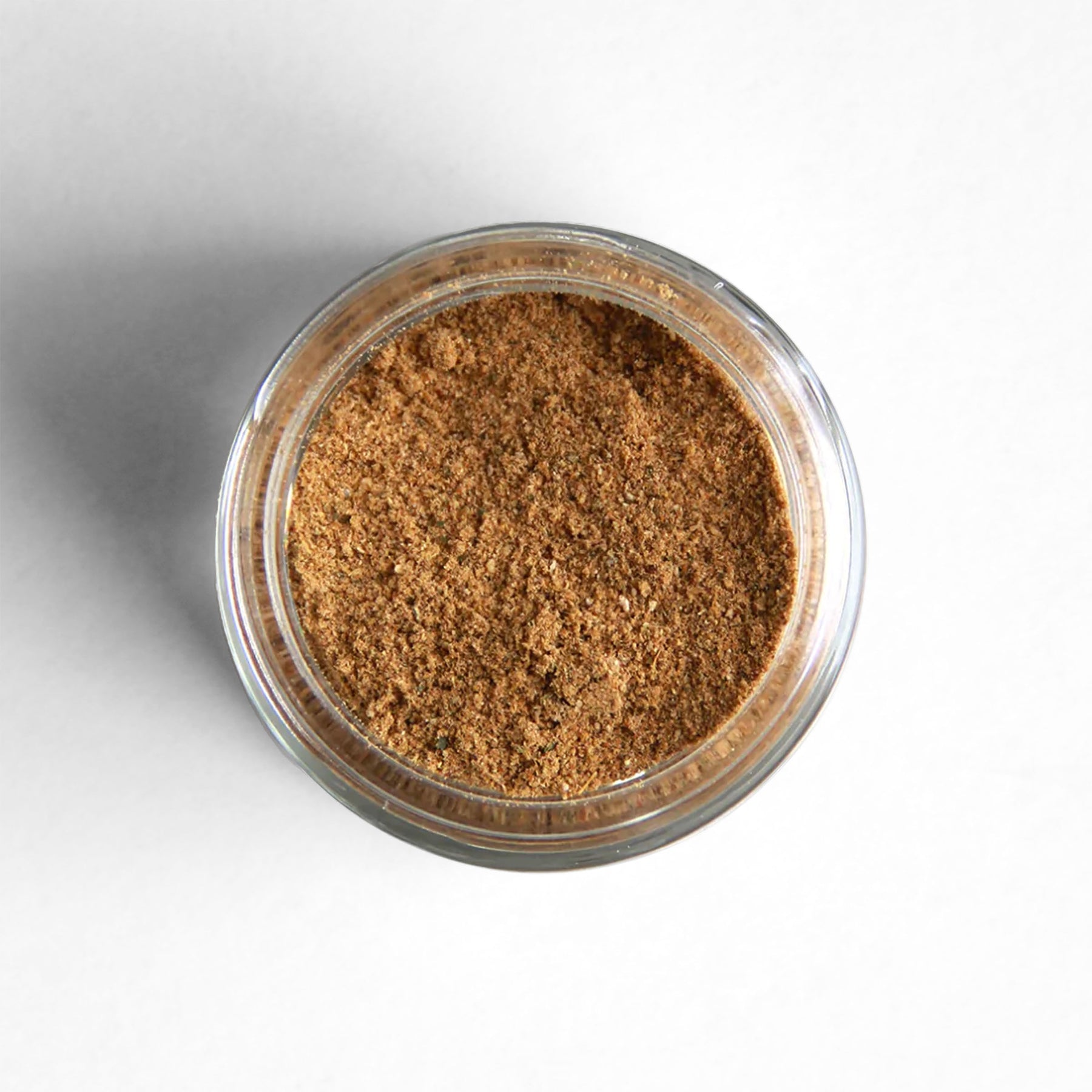 A glass jar of Betty Liu's Chile Crisp Dust, a collaboration spice blend with Betty Liu and Curio Spice.