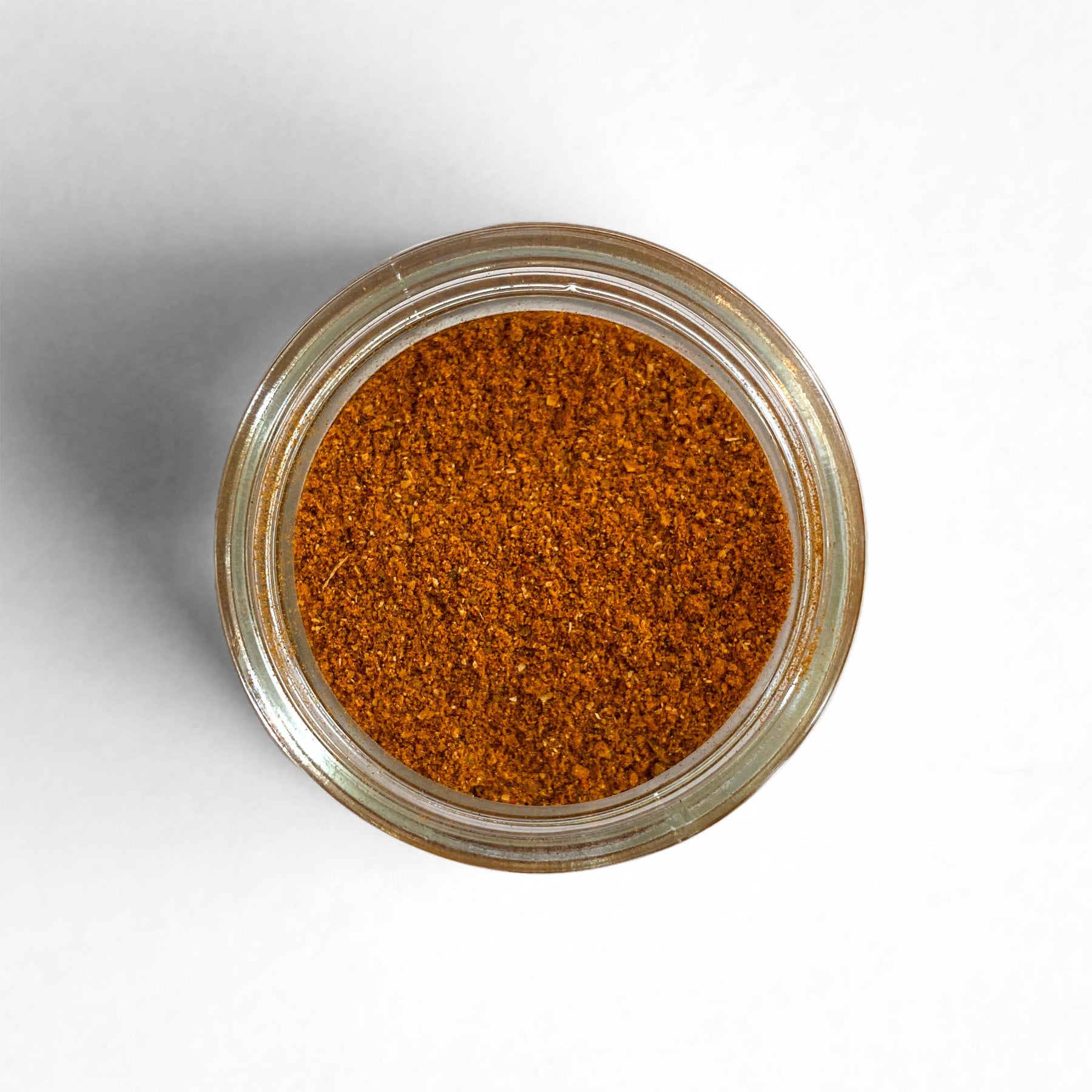 - Contains Paprika, garlic, chiles, ginger, coriander, cinnamon, nutmeg, basil, turmeric, fennel, thyme, caraway, black and white pepper, mace, nigella, cardamom, cumin, clove.
