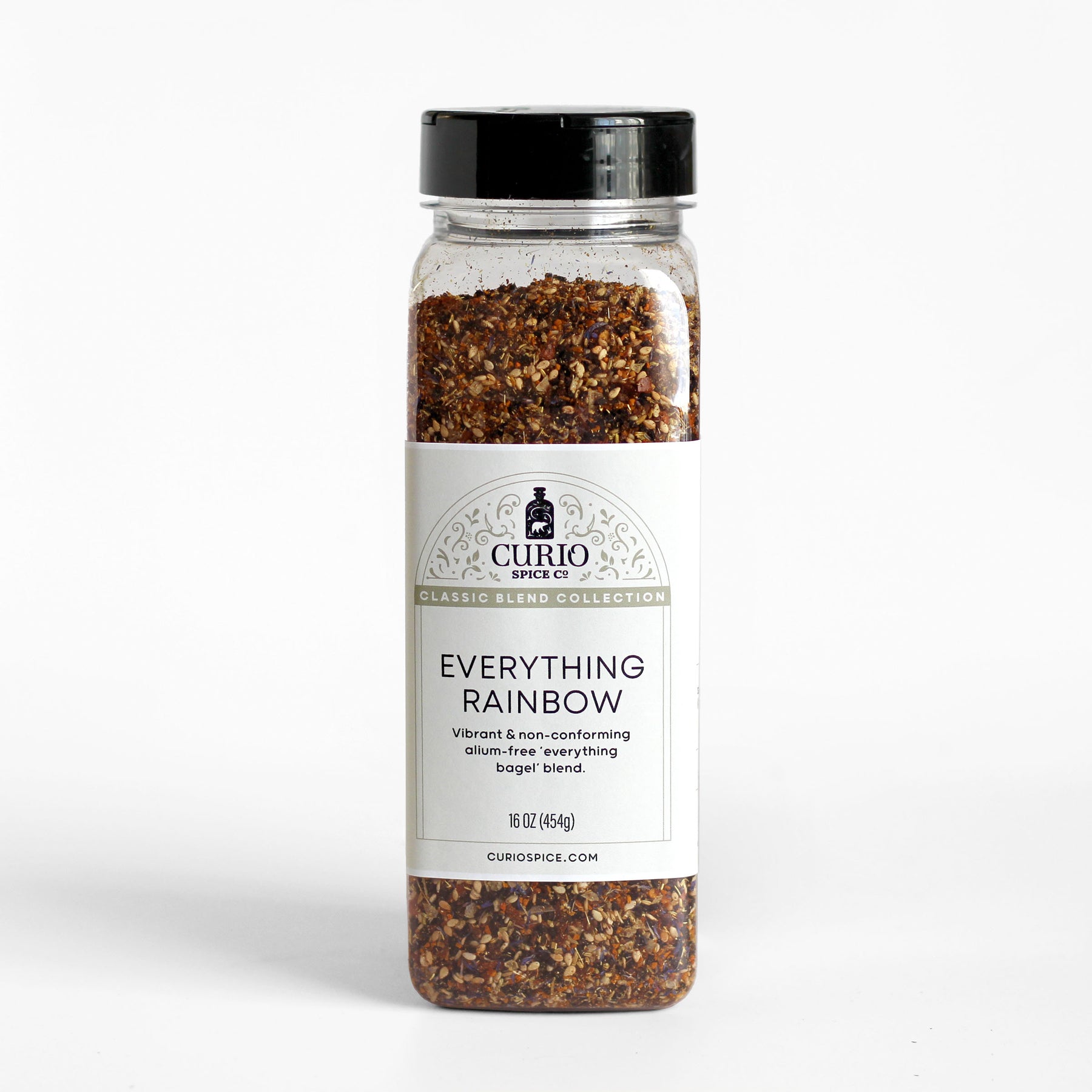 This full-spectrum 'everything bagel' blend is crunchy, colorful, and crave-worthy! Instead of the traditional garlic, onion and poppy seed of classic everything blends, we added sumac for tartness, maras chile flakes for umami heat, turmeric for earthiness, and blue cornflower for a floral, honeyed touch. Crafted in collaboration with David Goodtree of FoodGraph, this blend is great as a topping for hummus, salads, and eggs. Allium free!