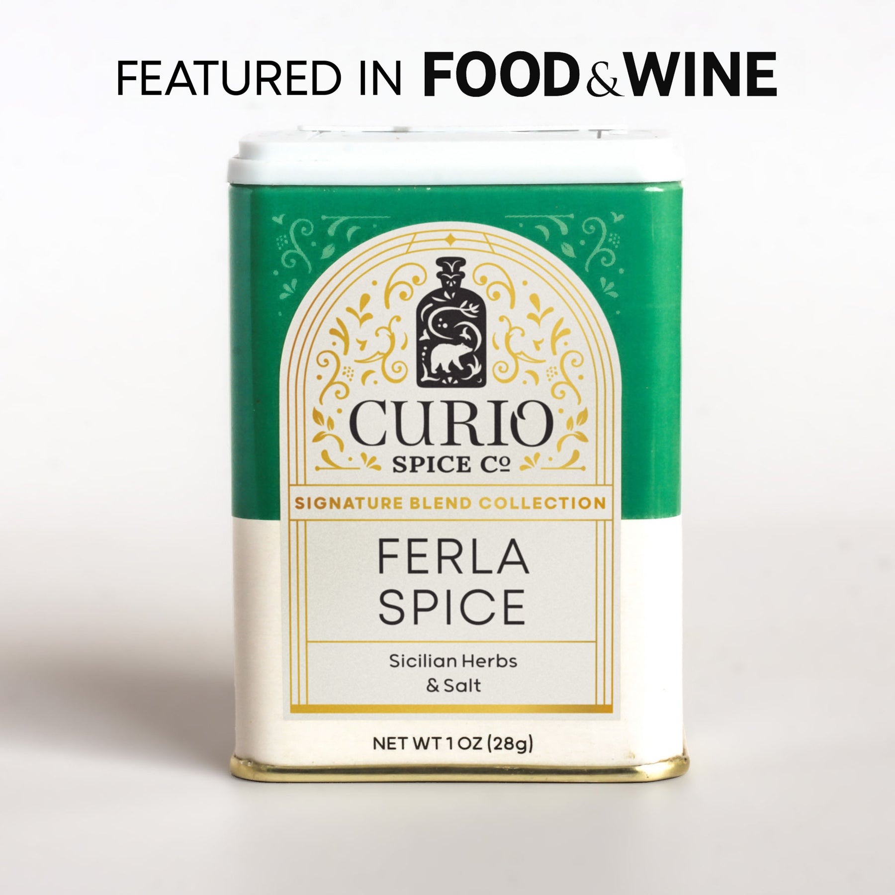 Ferla Spice is a bold, herb-filled celebration of the flavors and landscape of Sicily. Siblings Maurizio and Katia Marino dry exceptional wild native herbs that flourish in the Mediterranean sunlight and limestone-rich soil of their specialty farm just outside their hometown of Ferla in Sicily. Our Ferla Spice captures the aroma and flavors of this enchanting place. We source wild rosemary, fennel, oregano, and thyme directly from the Marino farm, combine them with a touch of Sicilian sea salt and a pinch of the island's chile to create a dynamic and robust herbal blend. Ferla Spice is easy to use for seafood, meats, grilled vegetables, and flatbreads.