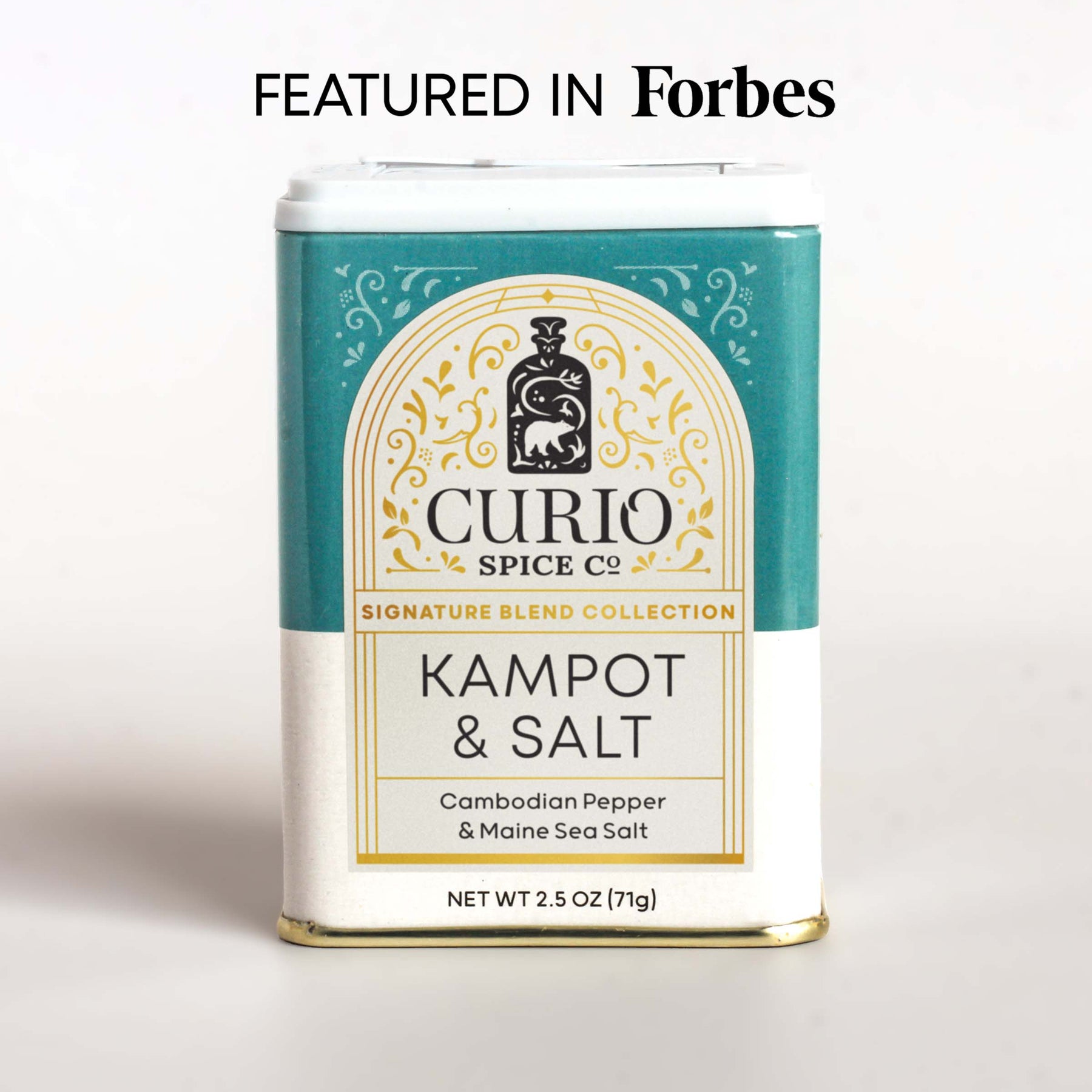 Kampot pepper is a rare peppercorn from Southern Cambodia. Following the destruction of the commercial pepper-farming industry during the Khmer Rouge genocide, wild pepper was rediscovered in the forests of Kampot and brought back into cultivation. The European Union has declared the region a Protected Designation of Origin (PDO) to ensure that this pepper is organically grown to the highest quality standards. This blend combines Kampot black pepper, ginger, lime, and tarragon with Maine sea salt to make a bright, refreshing blend perfect for tossing with vegetables, adding to dressing, rubbing into steak, or sprinkling on seafood after cooking. Featured on Saveur's list of favorite lunch condiments, Kampot & Salt also makes a lovely salt rim for margaritas!
