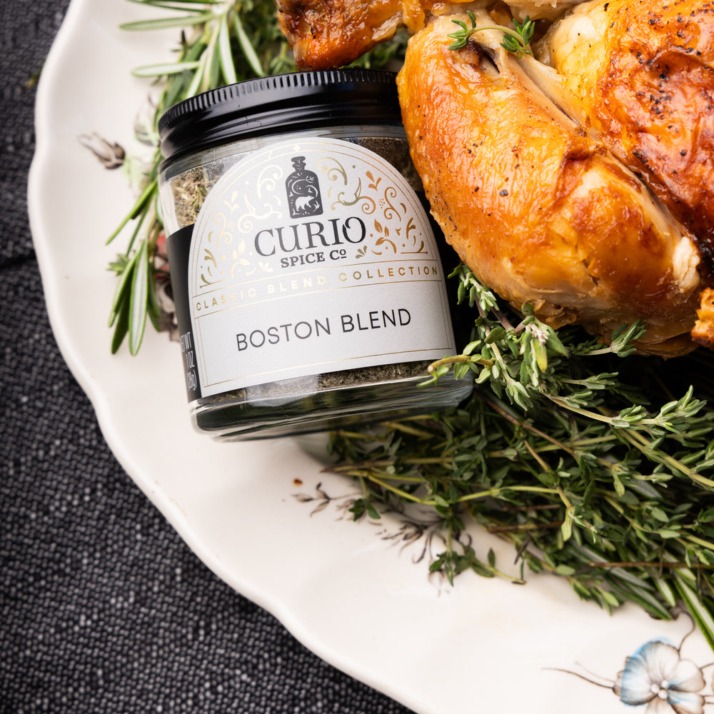 Bring juicy flavor to your holiday table with our Perfect Bird Bundle — a pairing of our Boston Blend and Brining Kit designed to make your roast chicken or Thanksgiving turkey juicy and crispy like never before. The Boston Blend, our salt-free take on a classic poultry seasoning, adds fragrant herbal depth with white pepper, grains of paradise, and a nod to Boston’s spice trade history. Paired with our Brining Kit, you’ll ensure every bite of your bird is juicy, tender, and beautifully seasoned - whether you’re hosting Thanksgiving, a Sunday roast, or a simple weeknight chicken dinner.