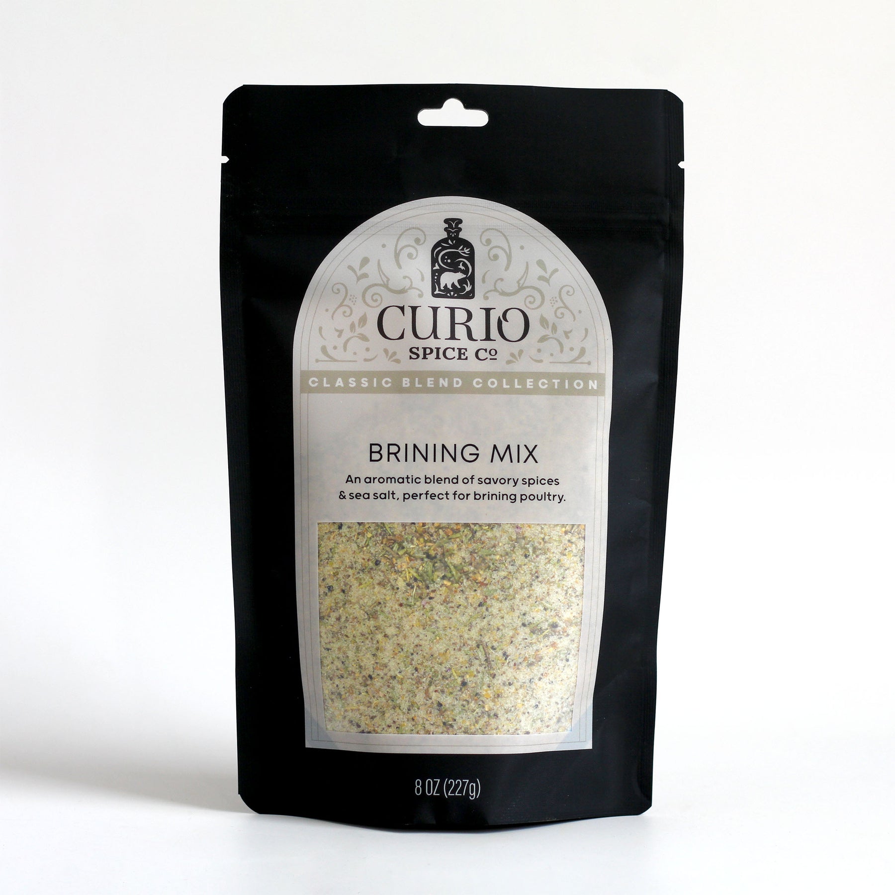 - Contains Brining Kit (Sea salt, juniper, black pepper, mustard seed, orange peel, fennel, cubeb pepper, onion, rosemary, coriander, thyme, sage, bay), Boston Blend (Sage, rosemary, onion, white pepper, thyme, celery, parsley, coriander, grains of paradise).