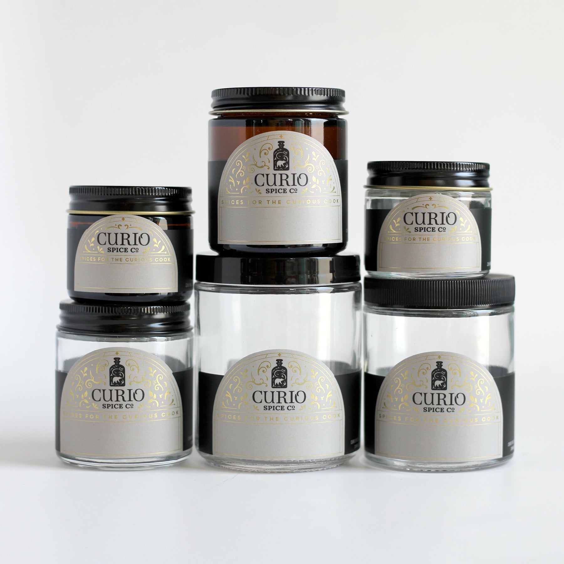 Clear glass jars to store your spices! Comes with a blank label. Note: Amber jars are best for herbs or ground spices that will degrade more quickly when exposed to sunlight. We find that permanent marker works best for our updated, more durable labels.