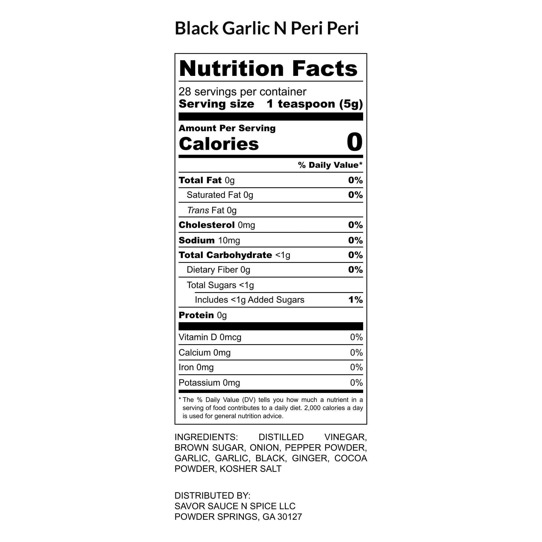 • Contains Distilled vinegar, brown sugar, onion, pepper powder, garlic, black garlic, ginger, cocoa powder, kosher salt.