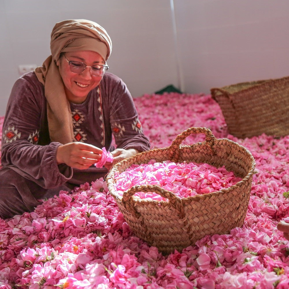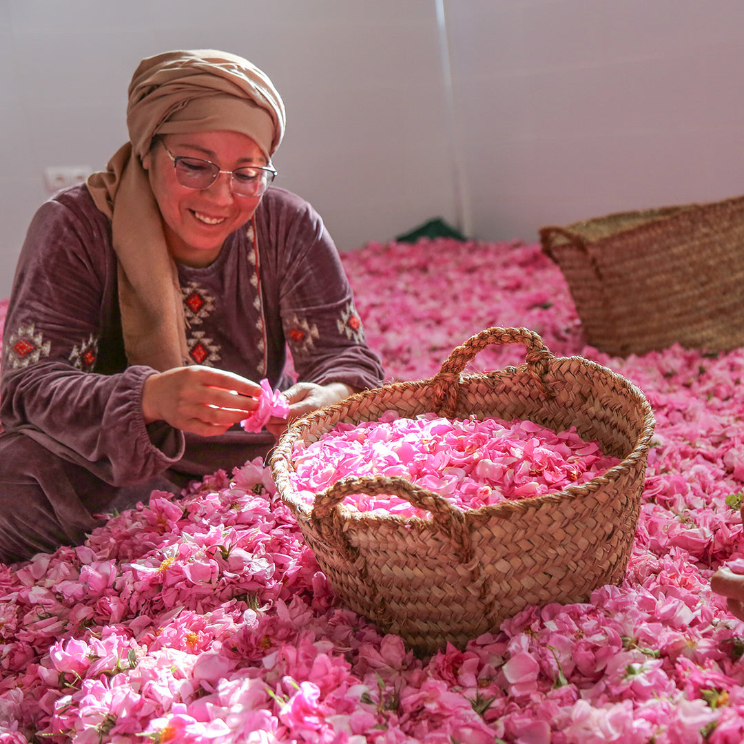 It lets us (and you!) support meaningful social and environmental initiatives, like The Rose Oasis Project, which benefits the community of women farmers growing Damask roses, spices, and herbs in the Vallée Dades Mgoune of Morocco.